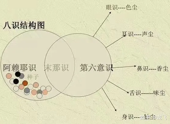 8、阿赖耶识:阿赖耶是梵音,又称为藏识,含能藏、所藏、执藏三义,是一切善恶种子寄托的所在。